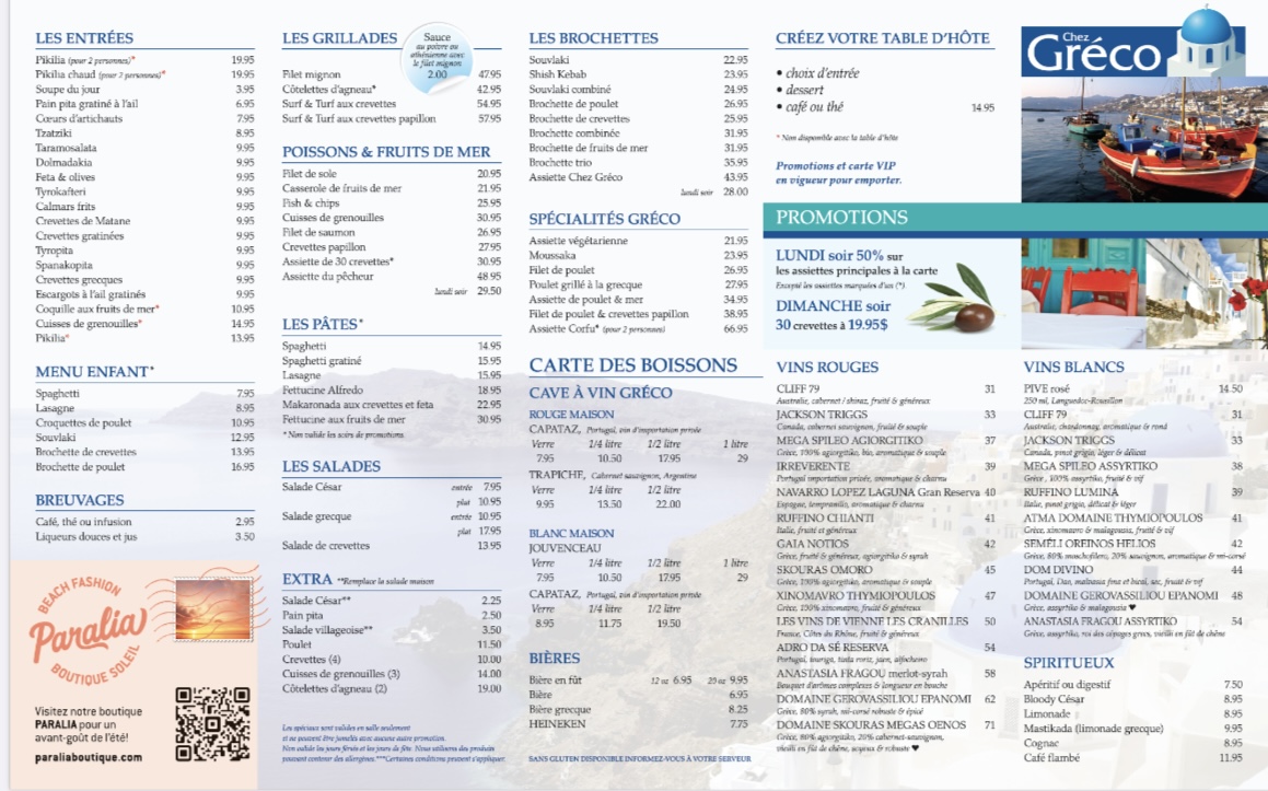 Depuis 1987 Chez Gréco, c’est un personnel qui vous fait vivre une experience unique autant en ami qu’en famille dans une ambiance chaleureuse.